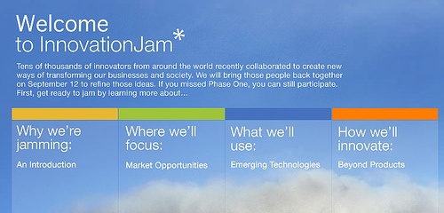 2006年舉辦的Innovation Jam為 IBM歷年來規模最大的一次,為期共6天,七月及九月各3 天,總計約有15萬人參與,而且參與者來自104個國家的員工、客戶、股東、合作廠商等等。實際執行如下,IBM先邀請全球員工、員工家屬及67家選定的客戶,三天之內針對預設好的議題:「交通、健康醫療、環境永續與金融商務,未來將如何發展?有沒有更好的方案?現有的科技能如何配合?」各自在網路上提出不同的意見,由於時差因素,Innovation Jam能夠24小時不間斷的進行,最後IBM會將蒐集大家的想法,整理出最創新的方案,再撥列預算實現計劃。