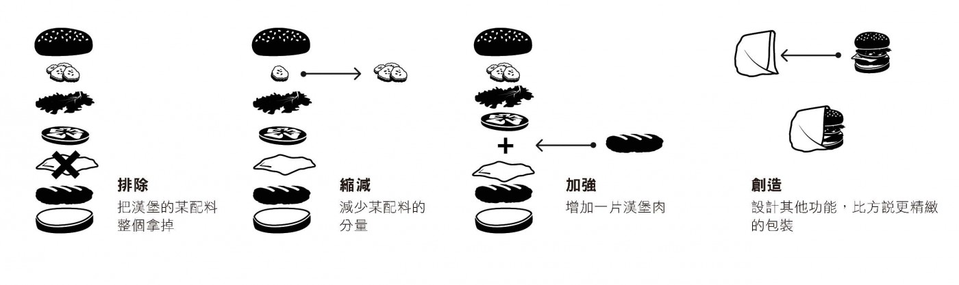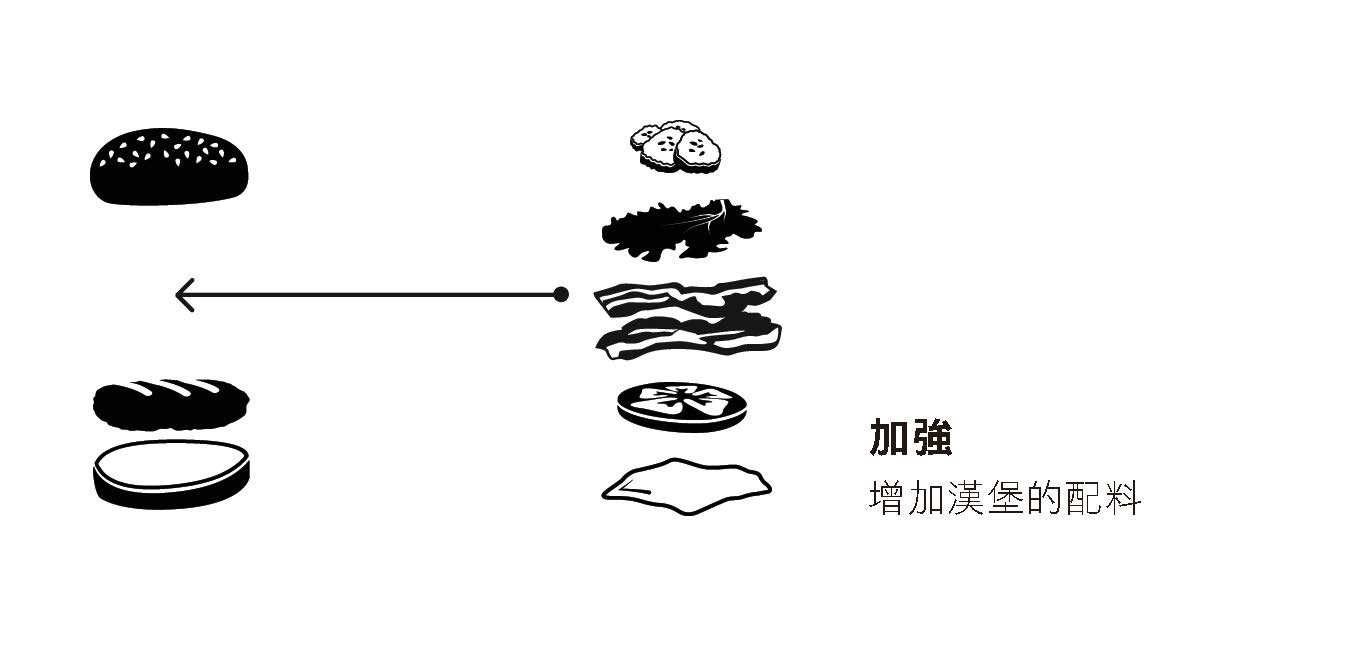 3. 選擇性排除、縮減、加強及創造功能與提供物:改變漢堡某個配料